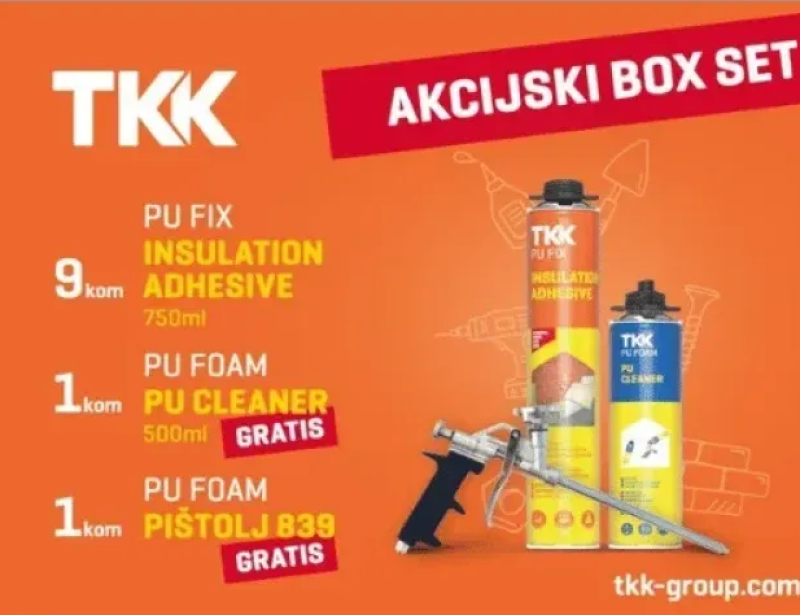 Naziv artikla: TKK SET 9 kom PUR PENA za stiropor 750ml + čistač pur pene GRATIS + pištolj za pur penu GRATIS