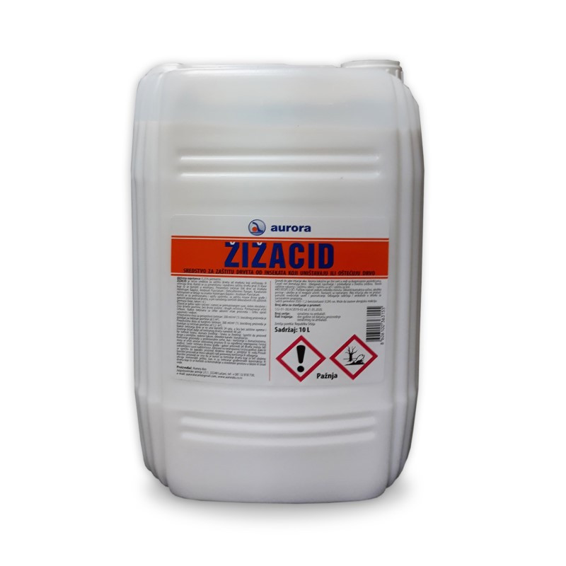 ŽIŽACID je tečno sredstvo koje se koristi u eneterijeru za preventivnu i kurativnu zaštitu drveta prve (I) klase od insekata koji uništavaju ili oštećuju drvo. Deluje na insekte Hylotrupes Bajulus, Anobium Punctatum i Reticulitermes flavipes.